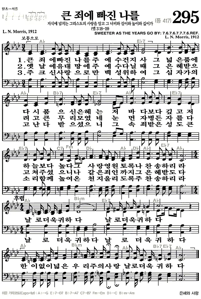 새찬송가_악보] 295장 - 큰 죄에 빠진 나를 다운로드(고화질/인쇄용)