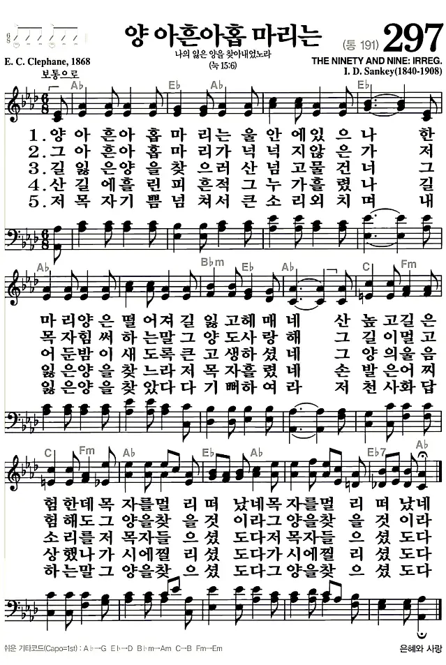 새찬송가_악보] 297장 - 양 아흔아홉 마리는 다운로드(고화질/인쇄용)