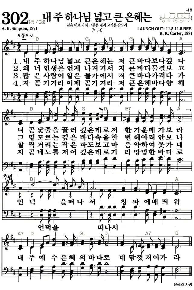 새찬송가_악보] 302장 - 내 주 하나님 넓고 큰 은혜는 다운로드(고화질/인쇄용)