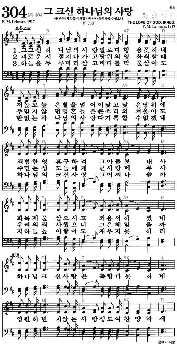 새찬송가_악보] 304장 - 그 크신 하나님의 사랑 다운로드(고화질/인쇄용)