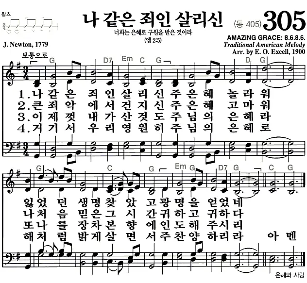 새찬송가_악보] 305장 - 나 같은 죄인 살리신 다운로드(고화질/인쇄용)
