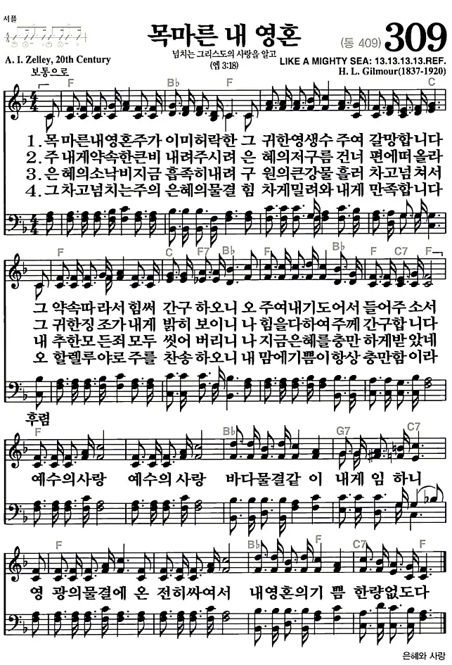 새찬송가_악보] 309장 - 목마른 내 영혼 다운로드(고화질/인쇄용)