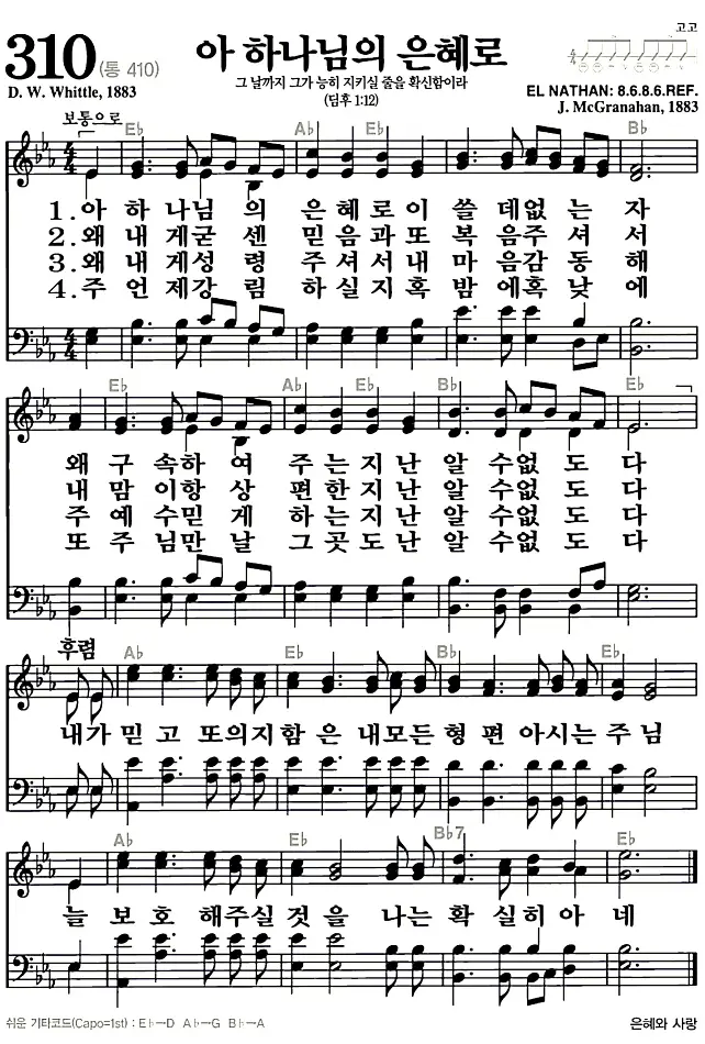 새찬송가_악보] 310장 - 아 하나님의 은혜로 다운로드(고화질/인쇄용)