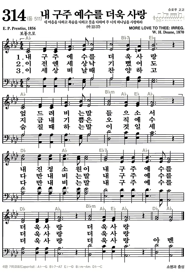 새찬송가_악보] 314장 - 내 구주 예수를 더욱 사랑 다운로드(고화질/인쇄용)