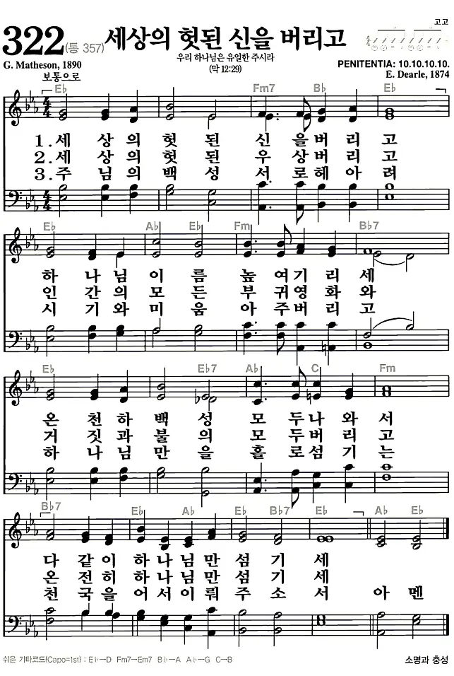 새찬송가_악보] 322장 - 세상의 헛된 신을 버리고 다운로드(고화질/인쇄용)