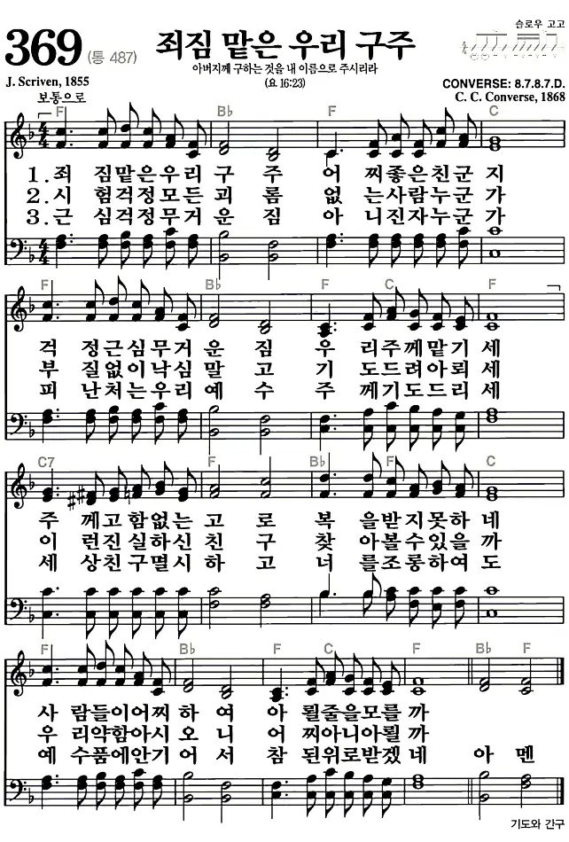 새찬송가_악보] 369장 - 죄 짐 맡은 우리구주 다운로드(고화질/인쇄용)