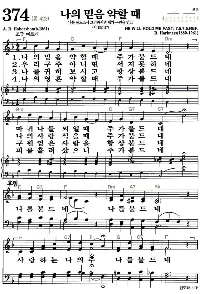 새찬송가_악보] 374장 - 나의 믿음 약할때 다운로드(고화질/인쇄용)