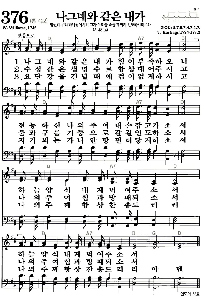 376장 - 나그네와 같은 내가 찬송가의 고화질 악보입니다.