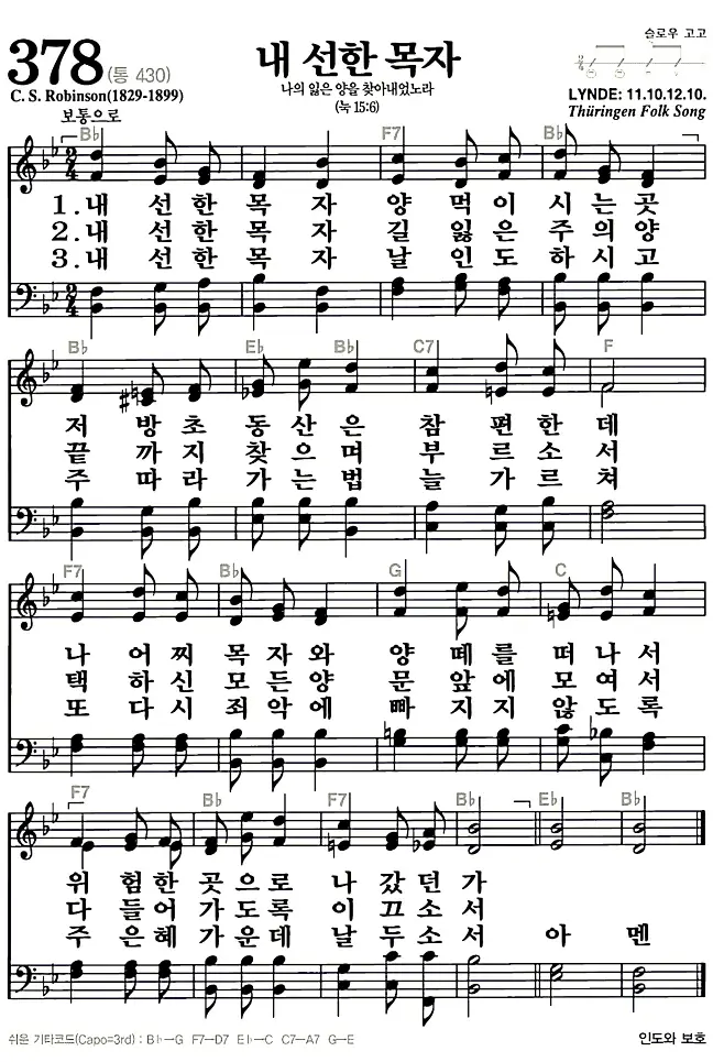 새찬송가_악보] 378장 - 내 선한 목자 다운로드(고화질/인쇄용)