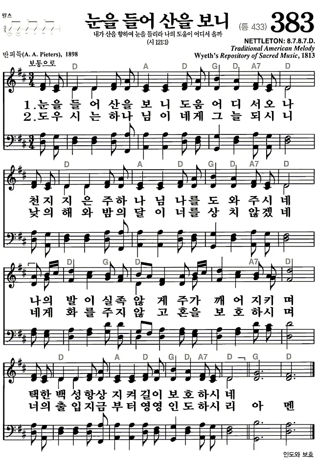 새찬송가_악보] 383장 - 눈을 들어 산을보니 다운로드(고화질/인쇄용)