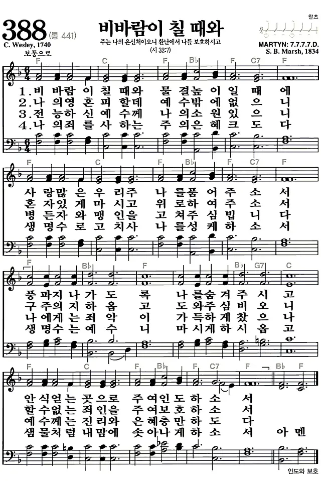 새찬송가_악보] 388장 - 비바람이 칠때와 다운로드(고화질/인쇄용)
