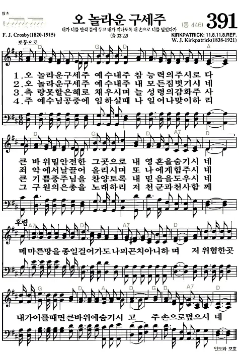 새찬송가_악보] 391장 - 오 놀라운 구세주 다운로드(고화질/인쇄용)