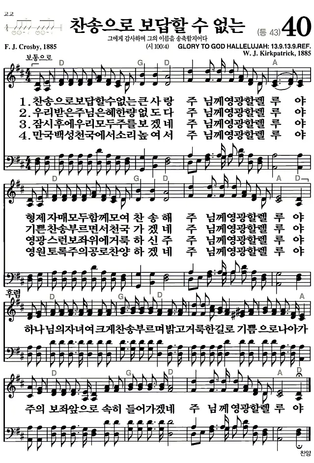 40장 - 찬송으로 보답할 수 없는 찬송가의 고화질 악보입니다.