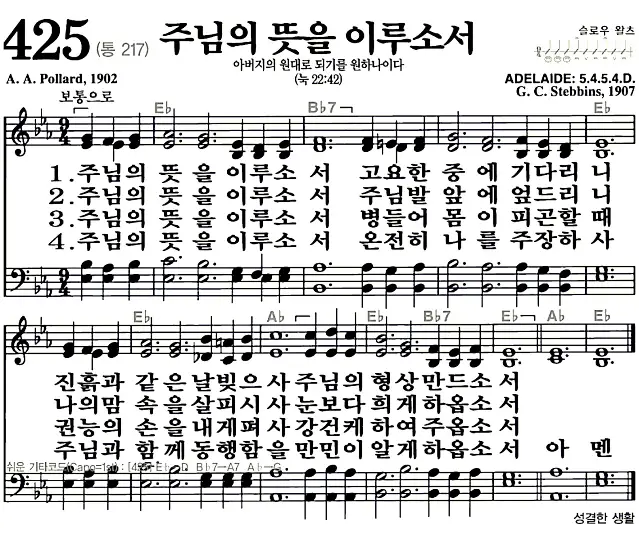 새찬송가_악보] 425장 - 주님의 뜻을 이루소서 다운로드(고화질/인쇄용)