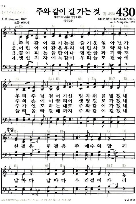 새찬송가_악보] 430장 - 주와 같이 길 가는것 다운로드(고화질/인쇄용)