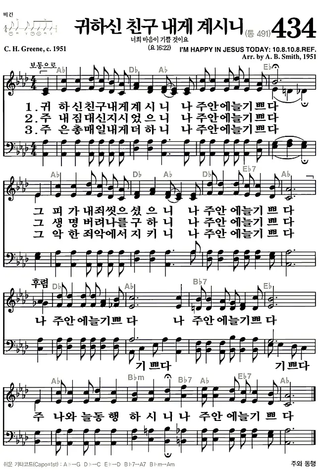 새찬송가_악보] 434장 - 귀하신 친구 내게 계시니 다운로드(고화질/인쇄용)