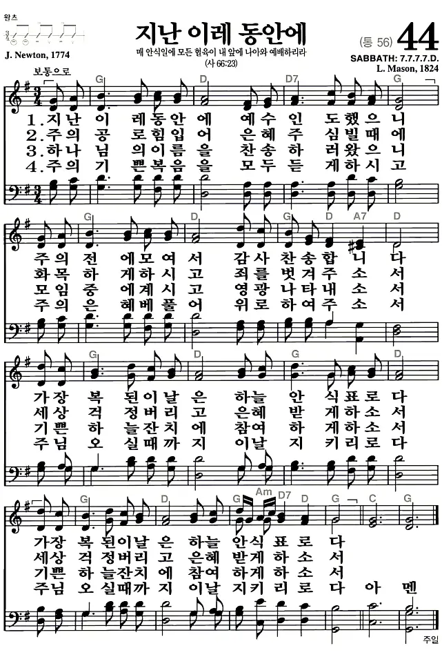 새찬송가_악보] 44장 - 지난 이레 동안에 다운로드(고화질/인쇄용)