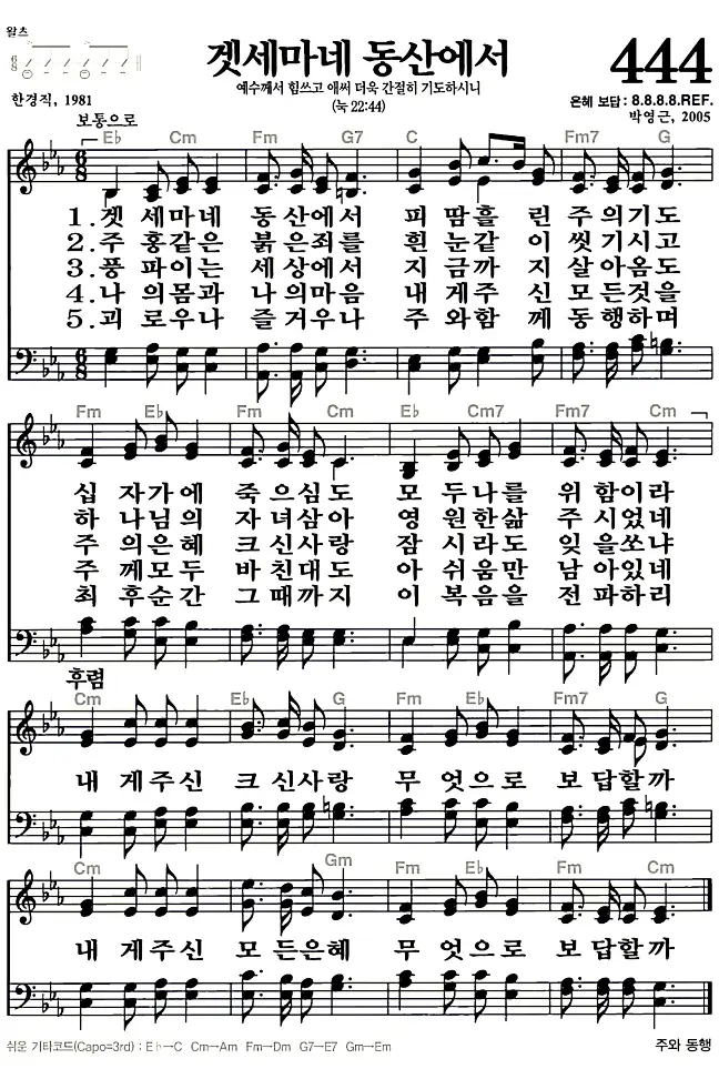새찬송가_악보] 444장 - 겟세마네 동산에서 다운로드(고화질/인쇄용)