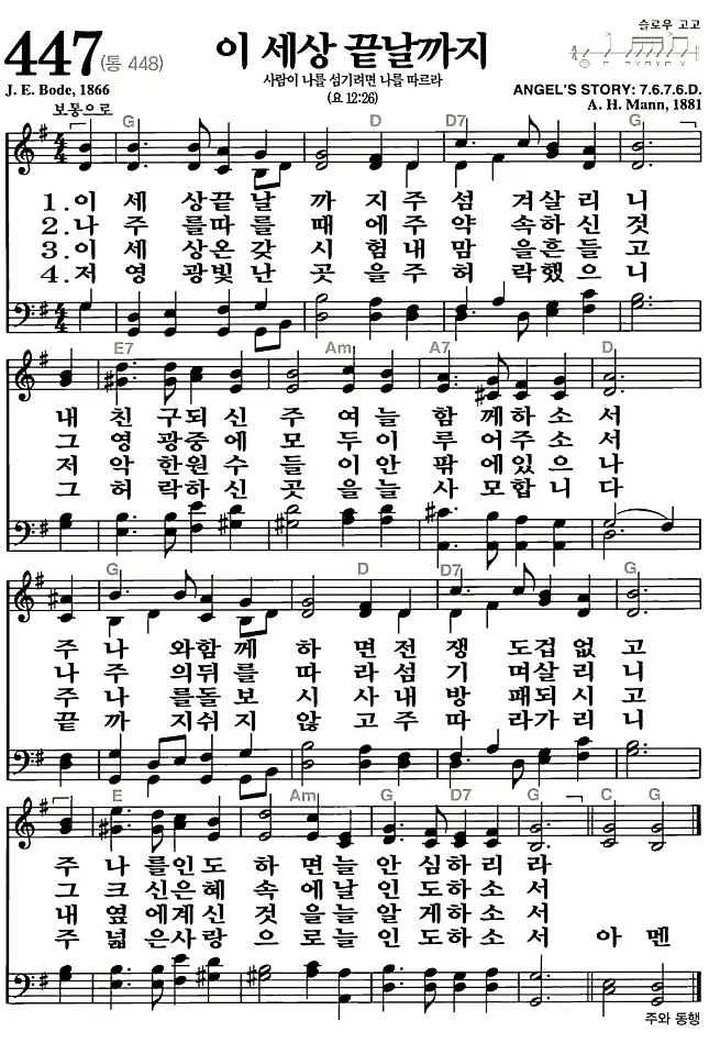 447장 - 이 세상 끝날까지 찬송가의 고화질 악보입니다.
