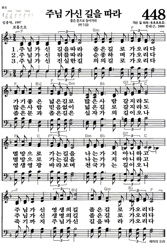 새찬송가_악보] 448장 - 주님 가신 길을 따라 다운로드(고화질/인쇄용)