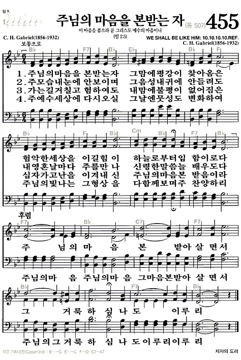 새찬송가_악보] 455장 - 주님의 마음을 본받는 자 다운로드(고화질/인쇄용)