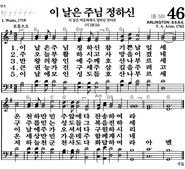 새찬송가_악보] 46장 - 이 날은 주님 정하신 다운로드(고화질/인쇄용)