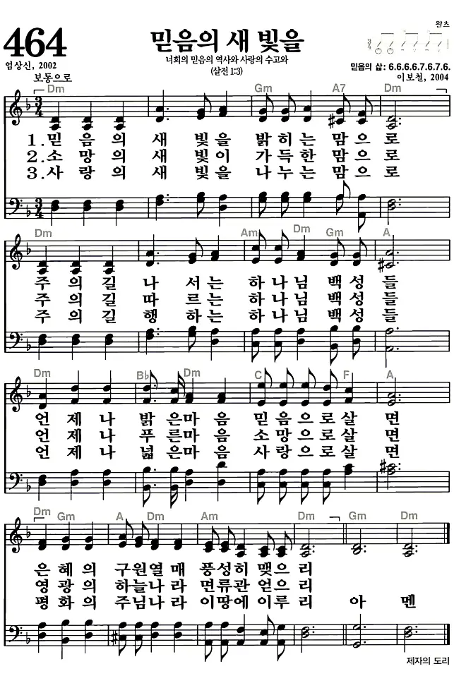 새찬송가_악보] 464장 - 믿음의 새 빛을 다운로드(고화질/인쇄용)