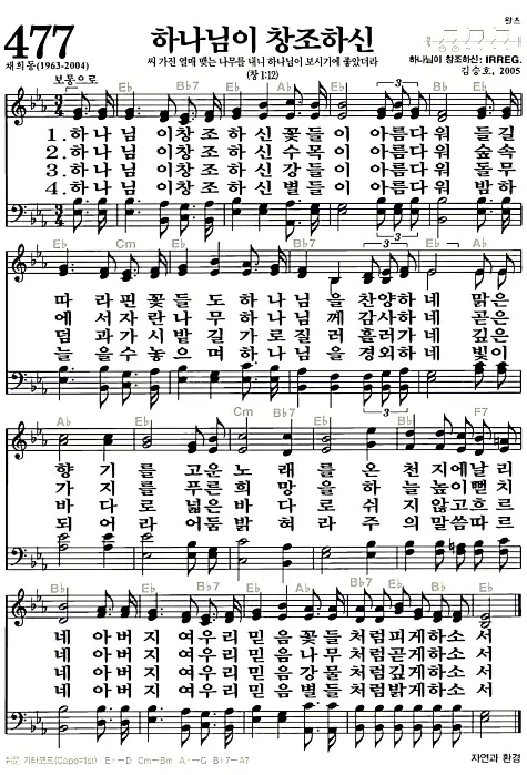 새찬송가_악보] 477장 - 하나님이 창조하신 다운로드(고화질/인쇄용)
