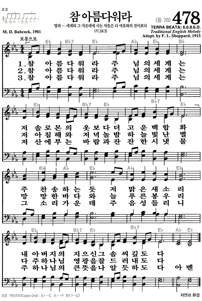 새찬송가_악보] 478장 - 참 아름다워라 다운로드(고화질/인쇄용)