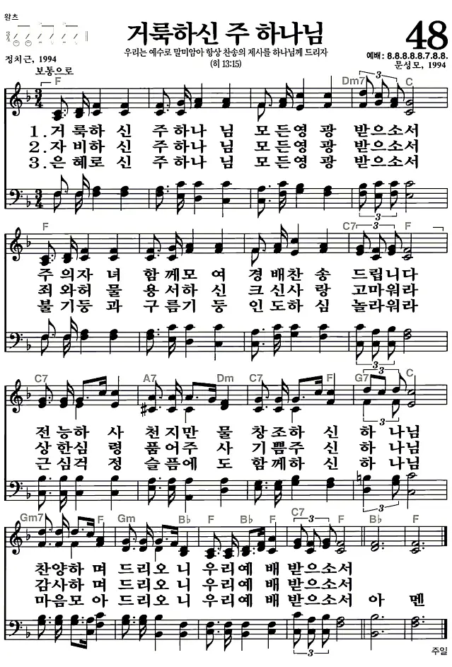48장 - 거룩하신 주 하나님 찬송가의 고화질 악보입니다.