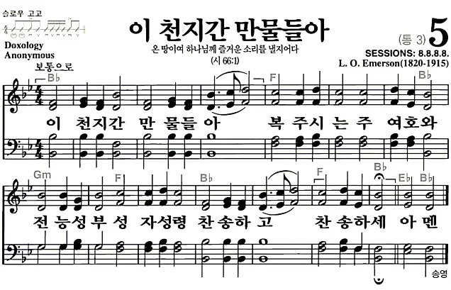 새찬송가_악보] 5장 - 이 천지간 만물들아 다운로드(고화질/인쇄용)