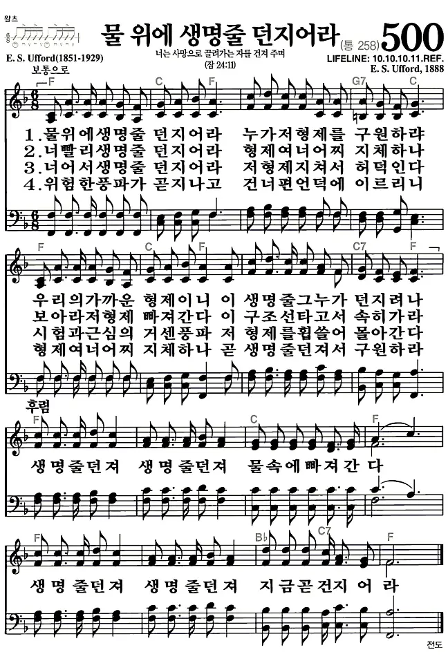 새찬송가_악보] 500장 - 물위에 생명줄 던지어라 다운로드(고화질/인쇄용)