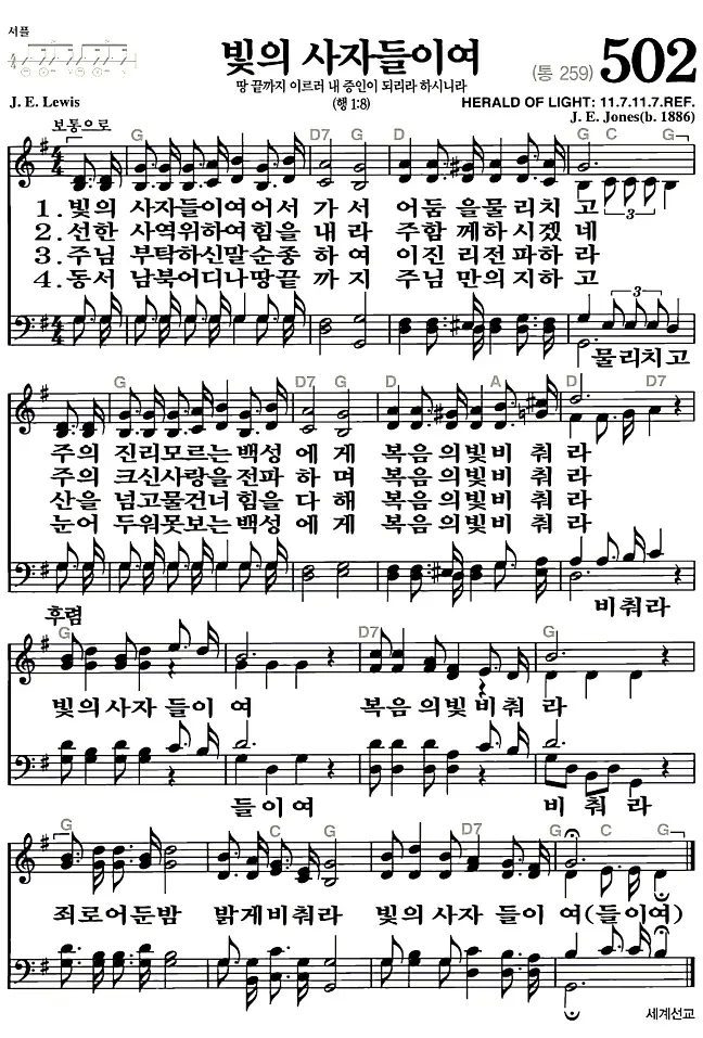 새찬송가_악보] 502장 - 빛의 사자들이여 다운로드(고화질/인쇄용)