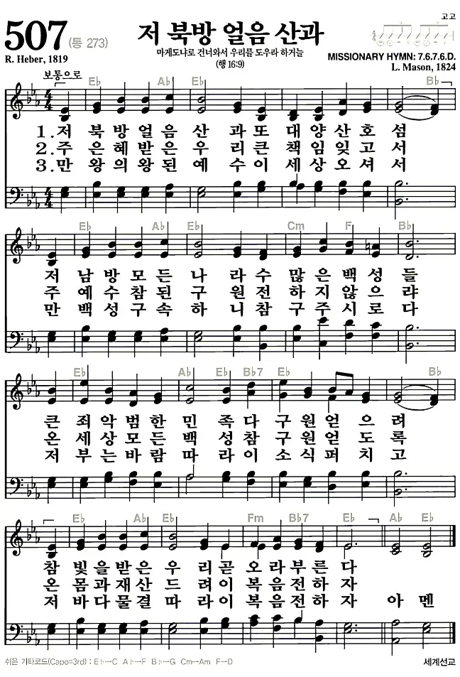 새찬송가_악보] 507장 - 저 북방 얼음 산과 다운로드(고화질/인쇄용)
