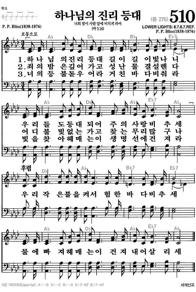 새찬송가_악보] 510장 - 하나님의 진리등대 다운로드(고화질/인쇄용)