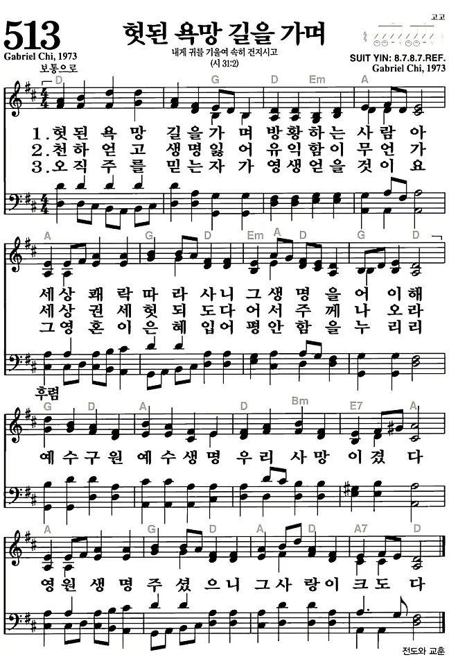 새찬송가_악보] 513장 - 헛된 욕망길을 가며 다운로드(고화질/인쇄용)