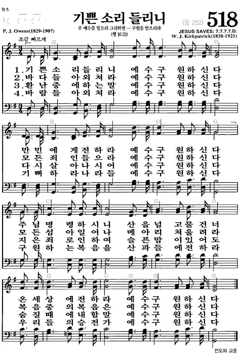 새찬송가_악보] 518장 - 기쁜소리 들리니 다운로드(고화질/인쇄용)