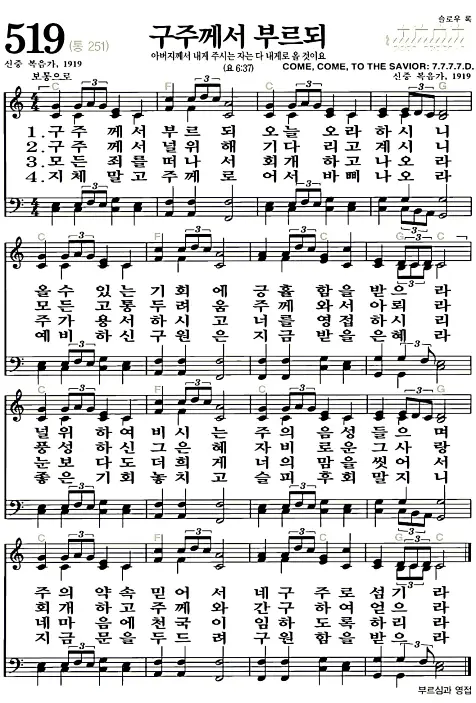 새찬송가_악보] 519장 - 구주께서 부르되 다운로드(고화질/인쇄용)