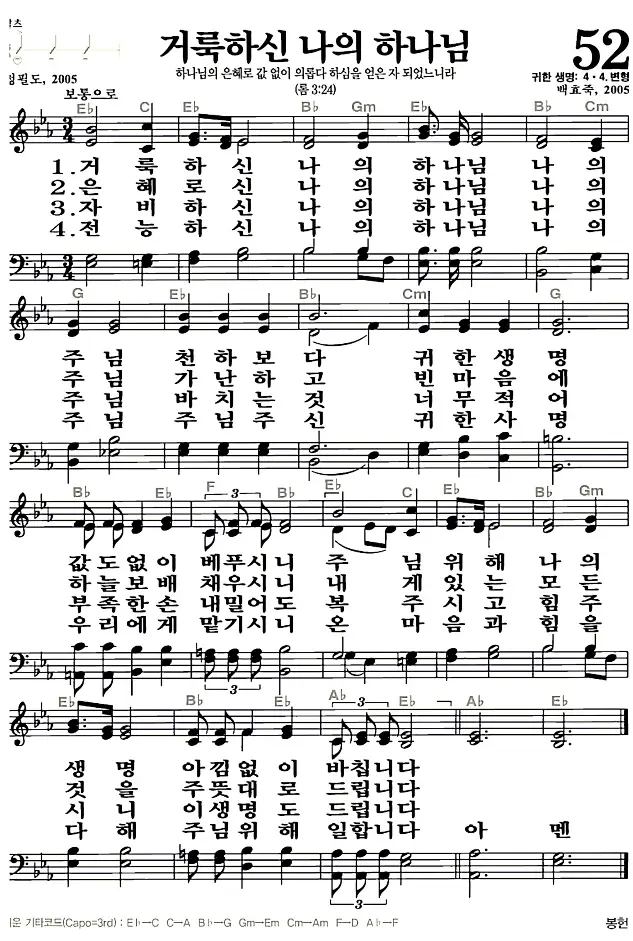 새찬송가_악보] 52장 - 거룩하신 나의 하나님 다운로드(고화질/인쇄용)