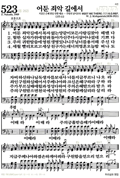 새찬송가_악보] 523장 - 어둔 죄악 길에서 다운로드(고화질/인쇄용)