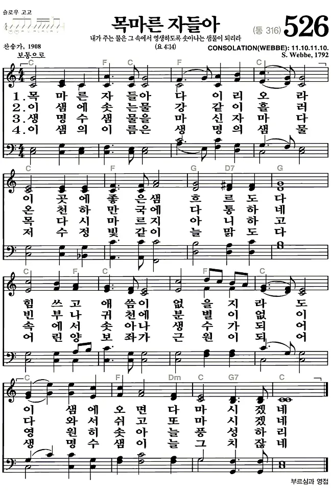 새찬송가_악보] 526장 - 목마른 자들아 다운로드(고화질/인쇄용)