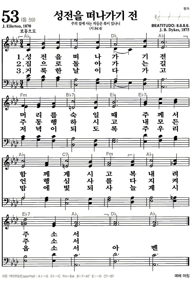 새찬송가_악보] 53장 - 성전을 떠나가기 전 다운로드(고화질/인쇄용)