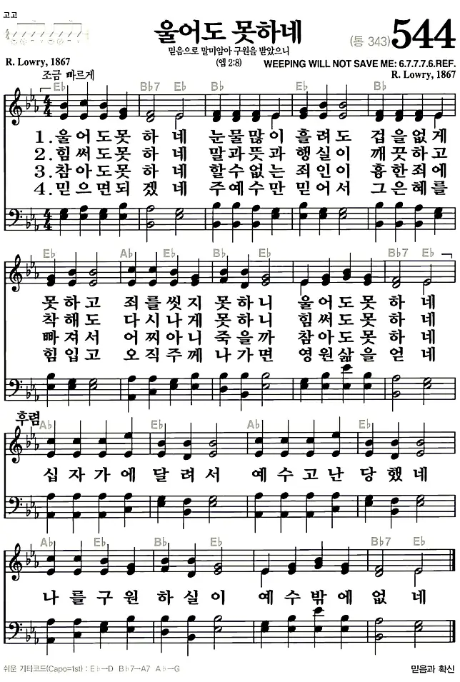 새찬송가_악보] 544장 - 울어도 못하네 다운로드(고화질/인쇄용)