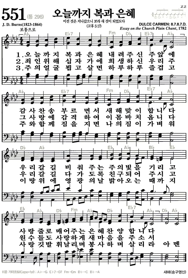 새찬송가_악보] 551장 - 오늘까지 복과 은혜 다운로드(고화질/인쇄용)