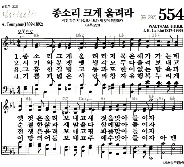 새찬송가_악보] 554장 - 종소리 크게 울려라 다운로드(고화질/인쇄용)