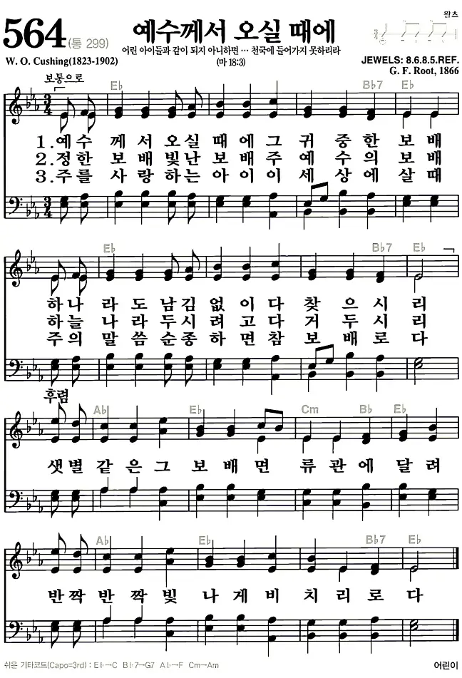 새찬송가_악보] 564장 - 예수께서 오실때에 다운로드(고화질/인쇄용)