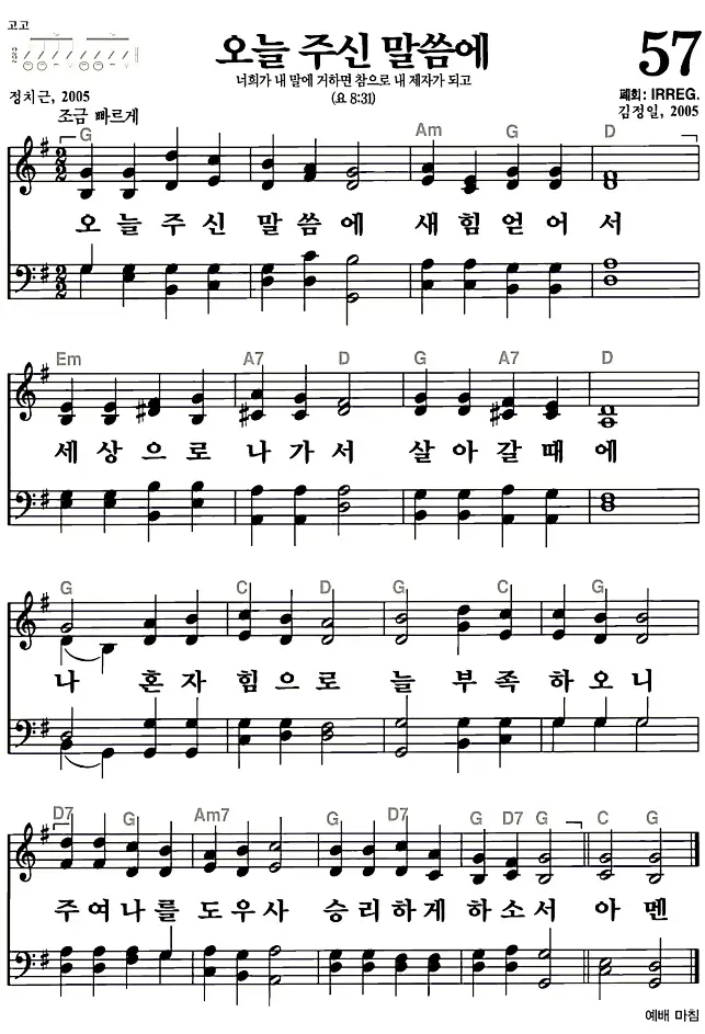 새찬송가_악보] 57장 - 오늘 주신 말씀에 다운로드(고화질/인쇄용)