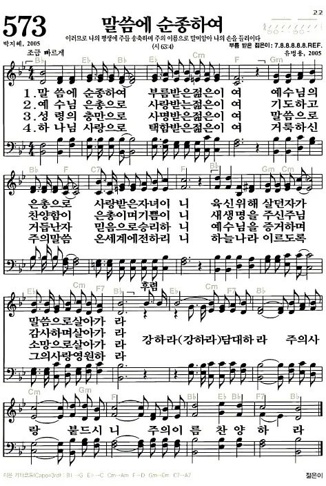 새찬송가_악보] 573장 - 말씀에 순종하여 다운로드(고화질/인쇄용)