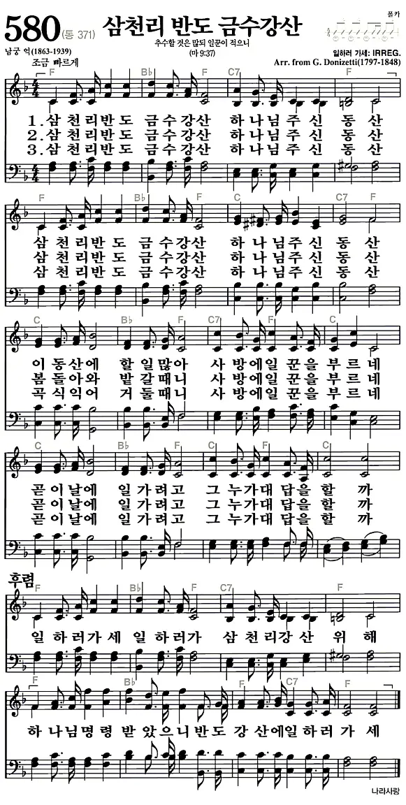 새찬송가_악보] 580장 - 삼천리 반도 금수강산 다운로드(고화질/인쇄용)