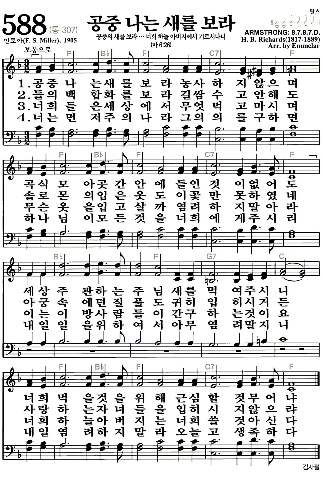 새찬송가_악보] 588장 - 공중 나는 새를 보라 다운로드(고화질/인쇄용)